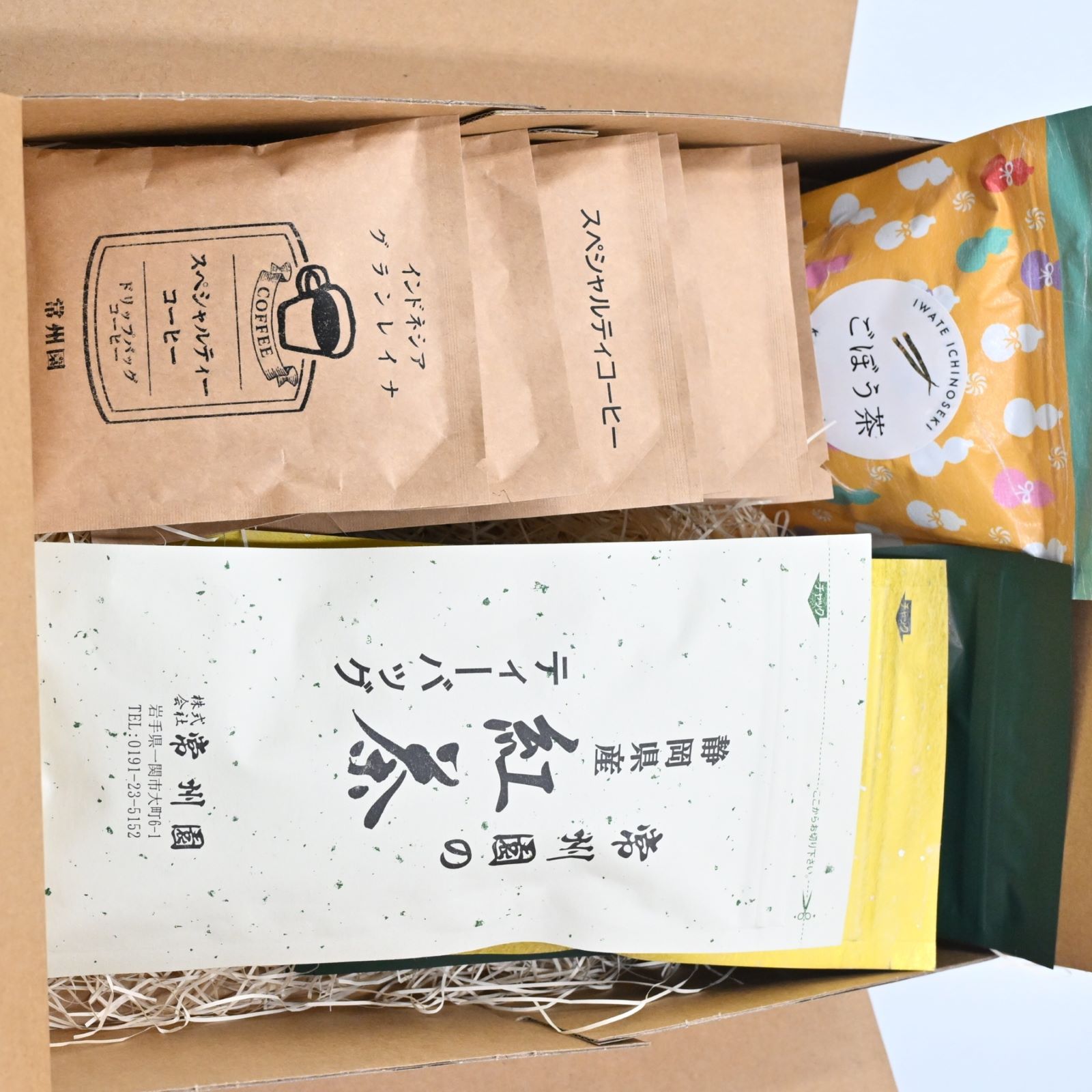 かさい農産ごぼう茶、常州園のドリップパックコーヒー(スペシャル、インドネシア、グアテマラ、ブラジル)、常州園の煎茶、常州園のほうじ茶、常州園の紅茶