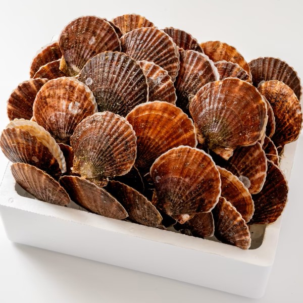越喜来湾の波に育てられた肉厚なホタテを殻付きの活でお届けします。