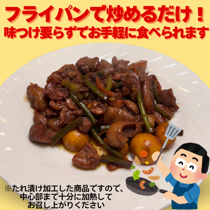 鶏肉の様々な部位をバランス良く組み合わせ、独自の製法と味付けで仕上げたチキンホルモンは、ご家庭で手軽にお楽しみいただけるよう工夫されています。